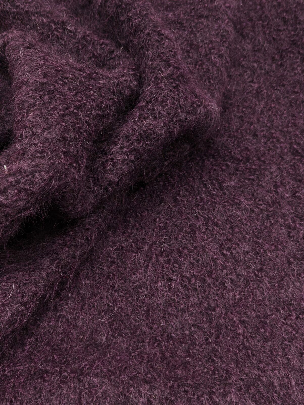 Dense boucle alpaca in a dark Bordeaux color. Firm texture with balanced elasticity and warmth.