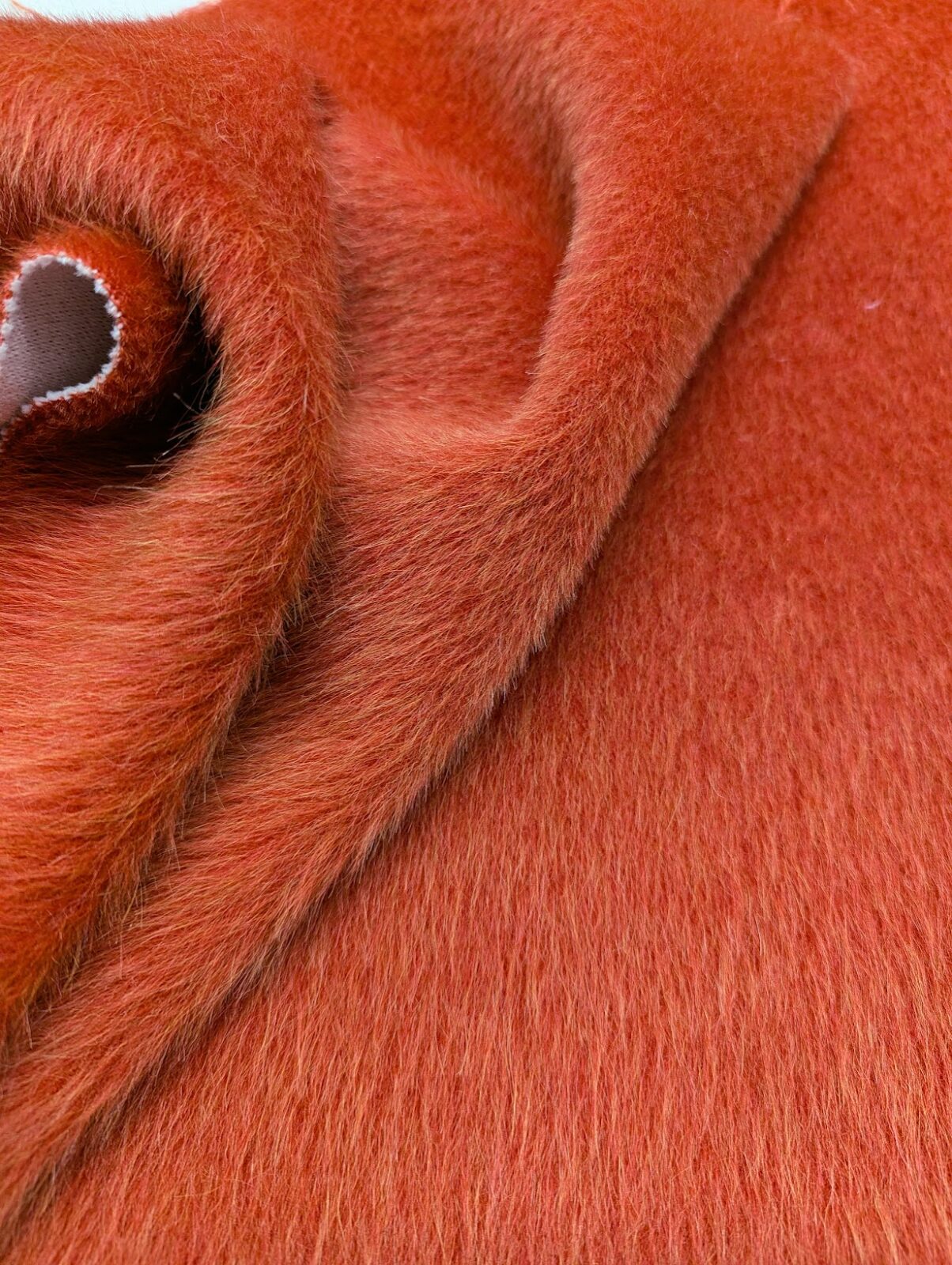 Vivid orange alpaca with a clean texture and medium density. Designed for precise construction and a crisp finish.