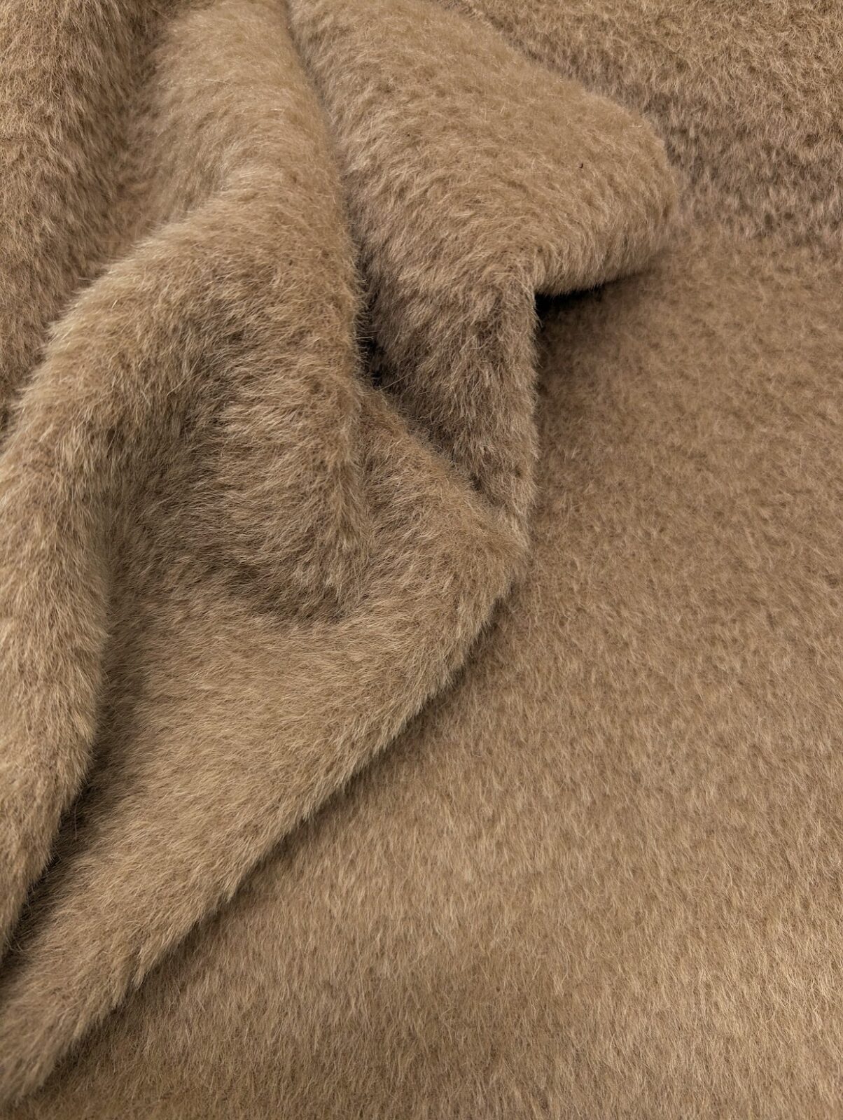 Natural camel color with a smooth alpaca finish. Timeless and easy to wear.