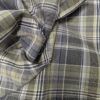 Cotton shirting fabric with irregular brown and white stripes woven into the structure. The surface remains smooth, with subtle visual variation and consistent stability.