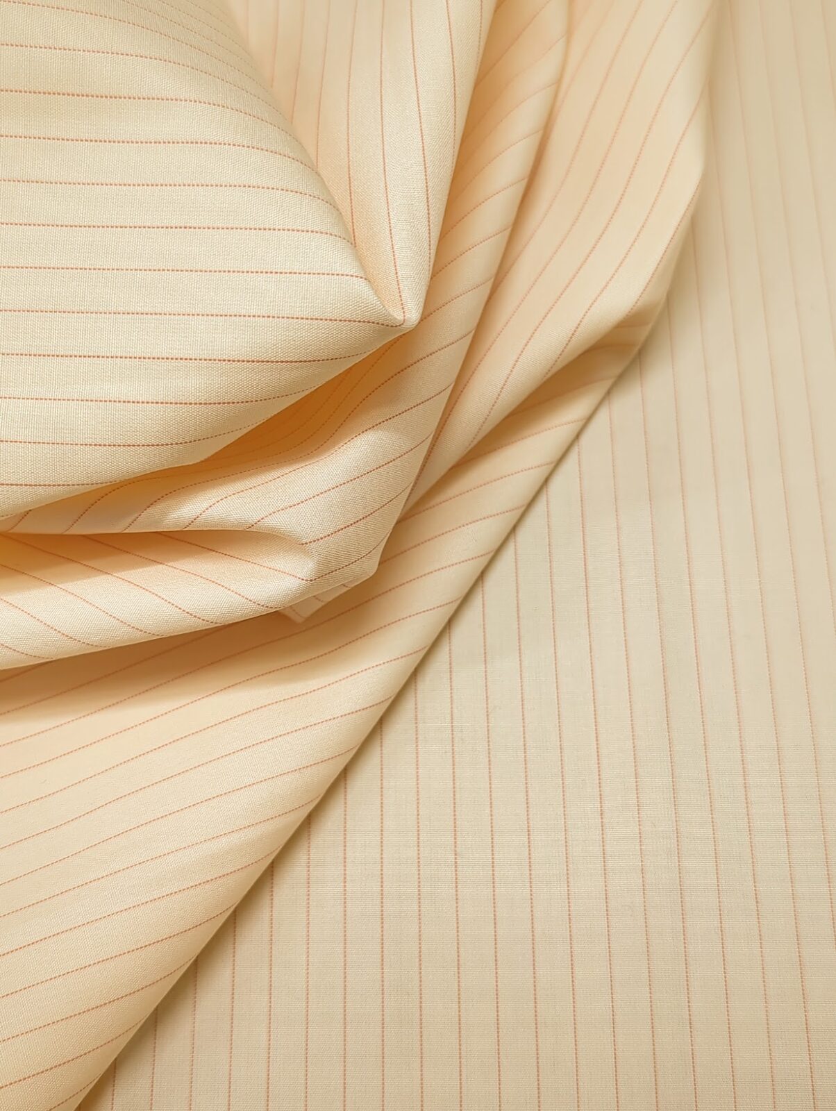 Cotton shirting with a smooth surface and uniform weave. The yellow and brown stripes are clearly defined and evenly integrated into the structure.
