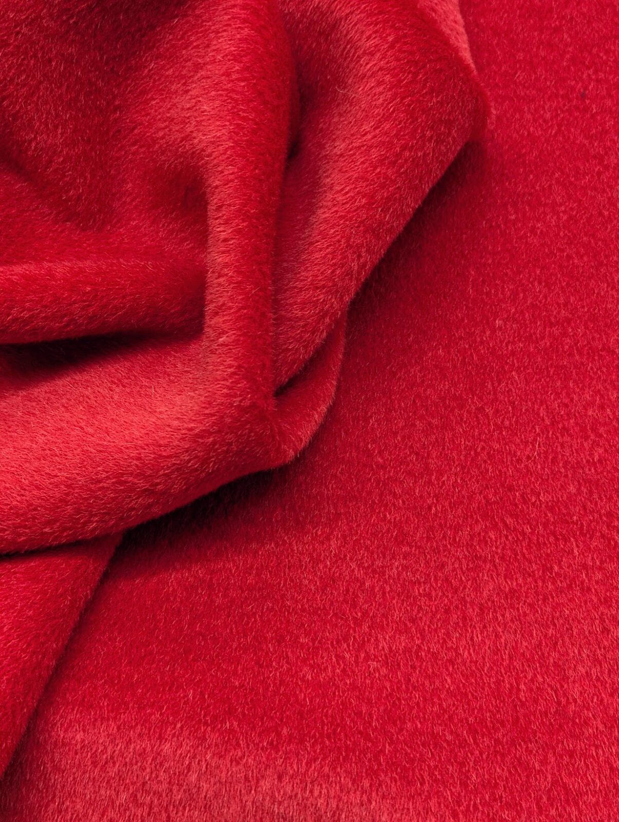 Lightweight baby Suri alpaca in a clear red tone. Even pile and smooth touch, ideal for statement pieces.