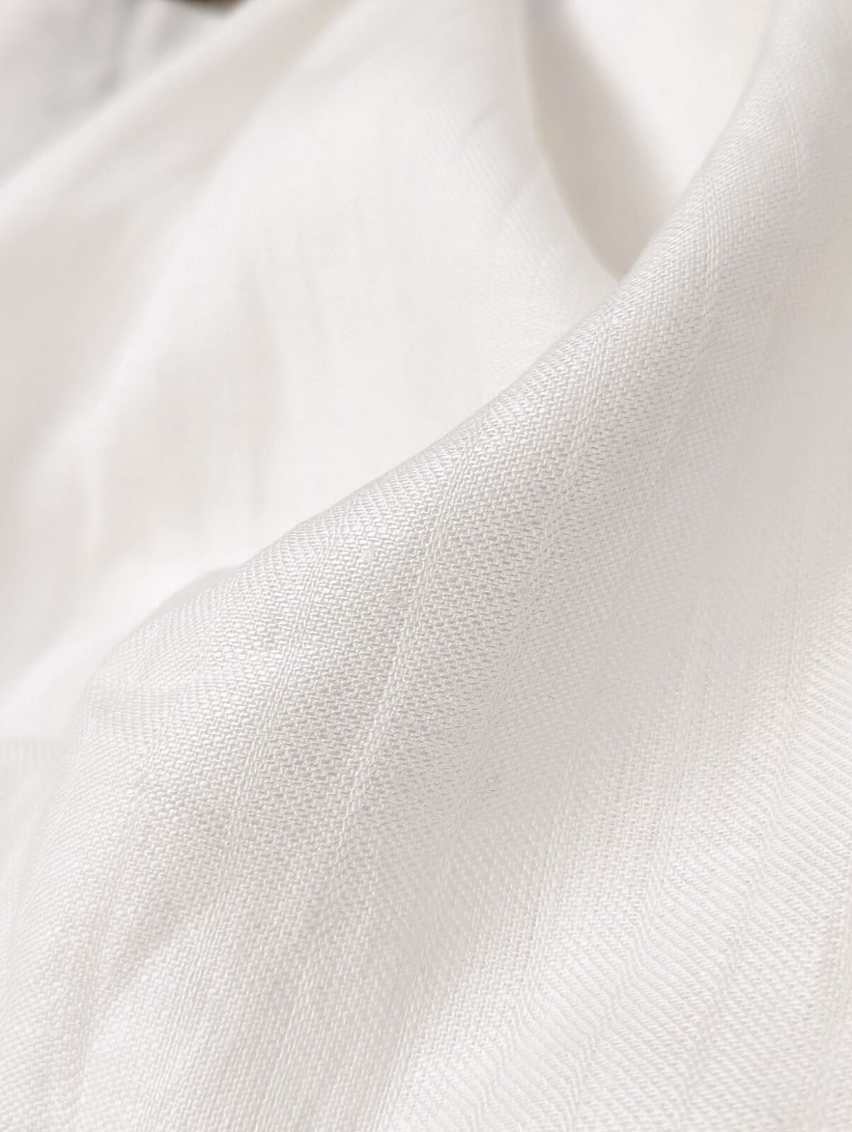 Elegant white linen with a basket weave texture. Durable yet breathable, perfect for shirts, dresses, and jackets.
