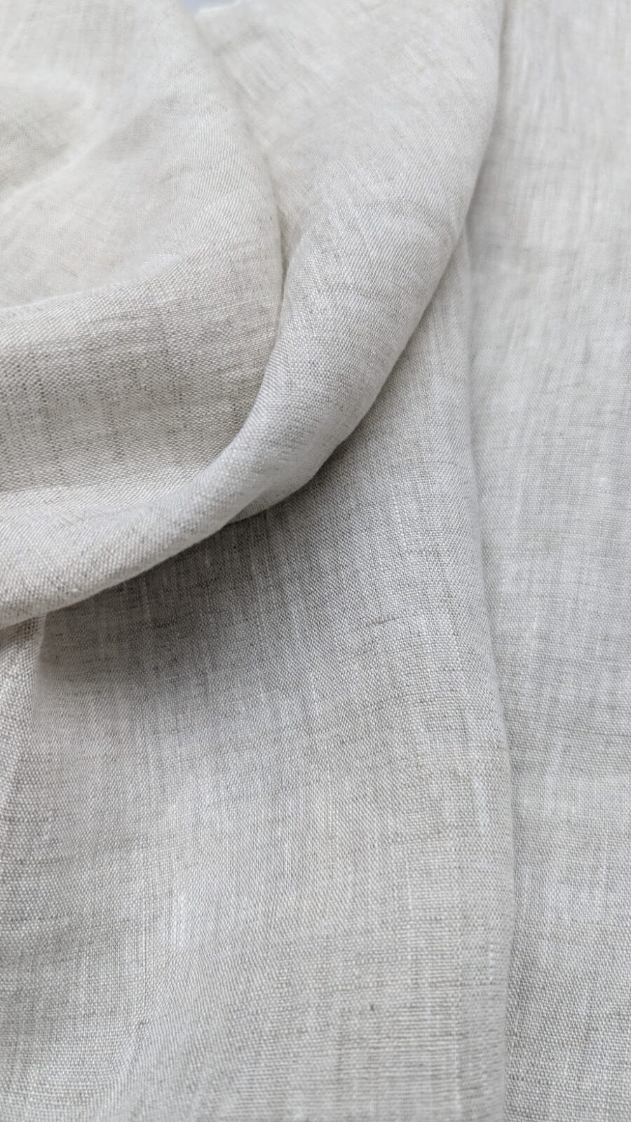 Premium Biella plain-weave linen in light grey. Elegant and versatile, perfect for suits, dresses, and trousers.