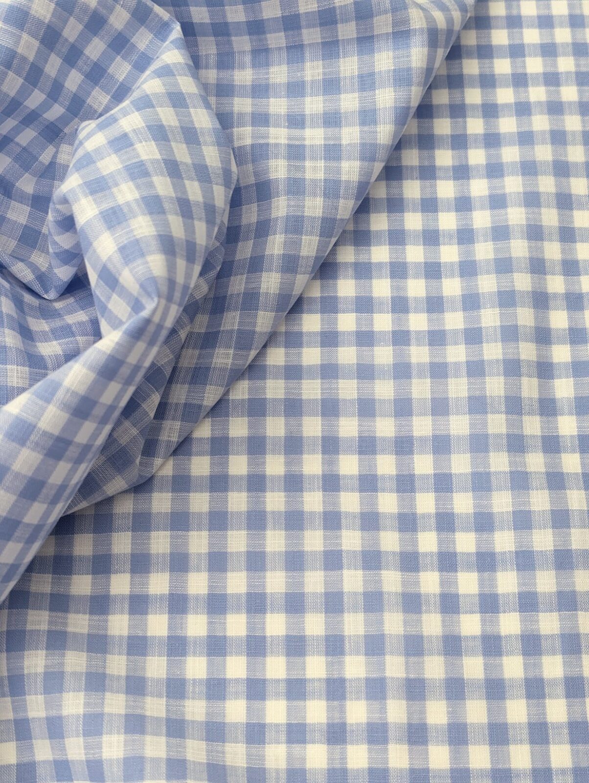 Premium Canclini linen in a blue and white gingham pattern. Fresh and lightweight, ideal for shirts, skirts, and dresses.