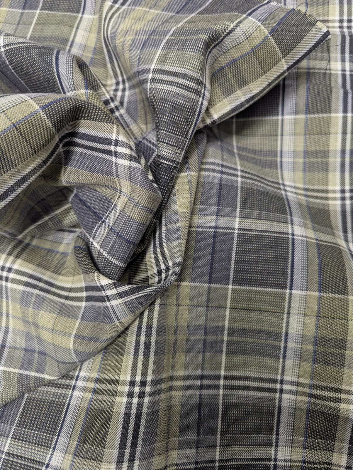 Cotton flannel fabric with a brushed surface and a soft, warm hand. The check pattern is clearly defined, while the weave remains even and stable with a matte finish.
