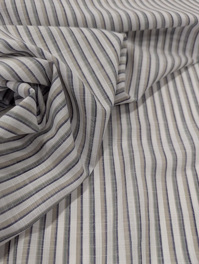 Cotton Linen Stripes Blue Pink White