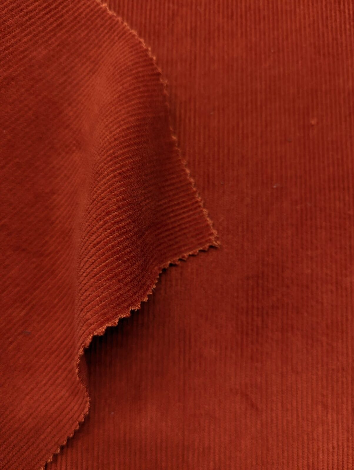 Fine-ribbed cotton micro corduroy in a warm cognac shade. Soft, lightweight, and versatile, suitable for dresses, trousers, and shirts.