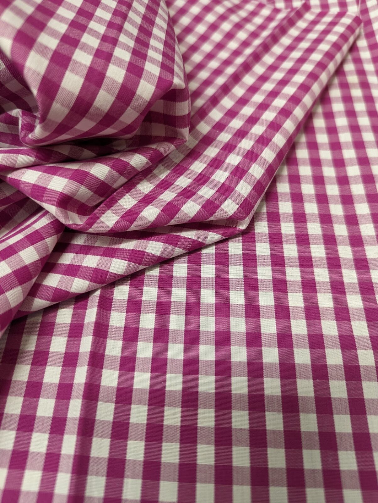 Classic cotton poplin gingham in pink and white. Light and airy, perfect for summer dresses, blouses, and skirts.