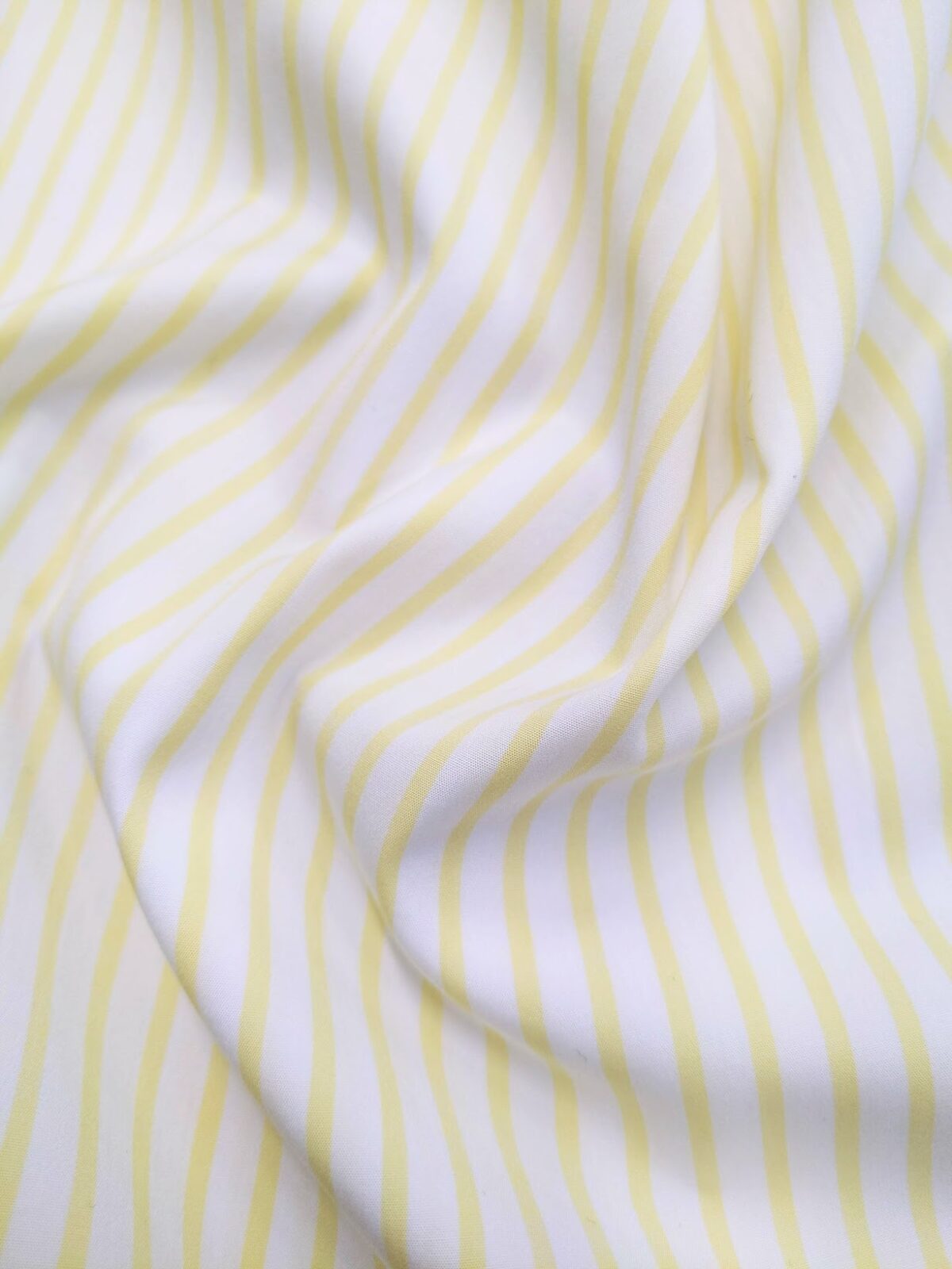 Bright and fresh cotton shirting with cheerful yellow and white stripes. Soft yet structured, it’s perfect for casual shirts, summer blouses, and light dresses.