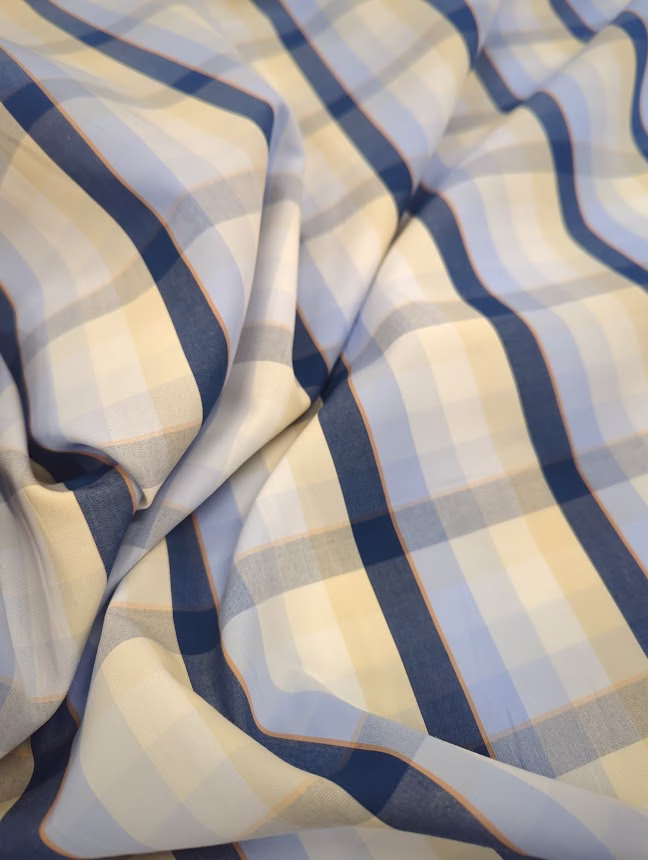 DC Cotton Plain Weave Shirting Checks Blue Yellow