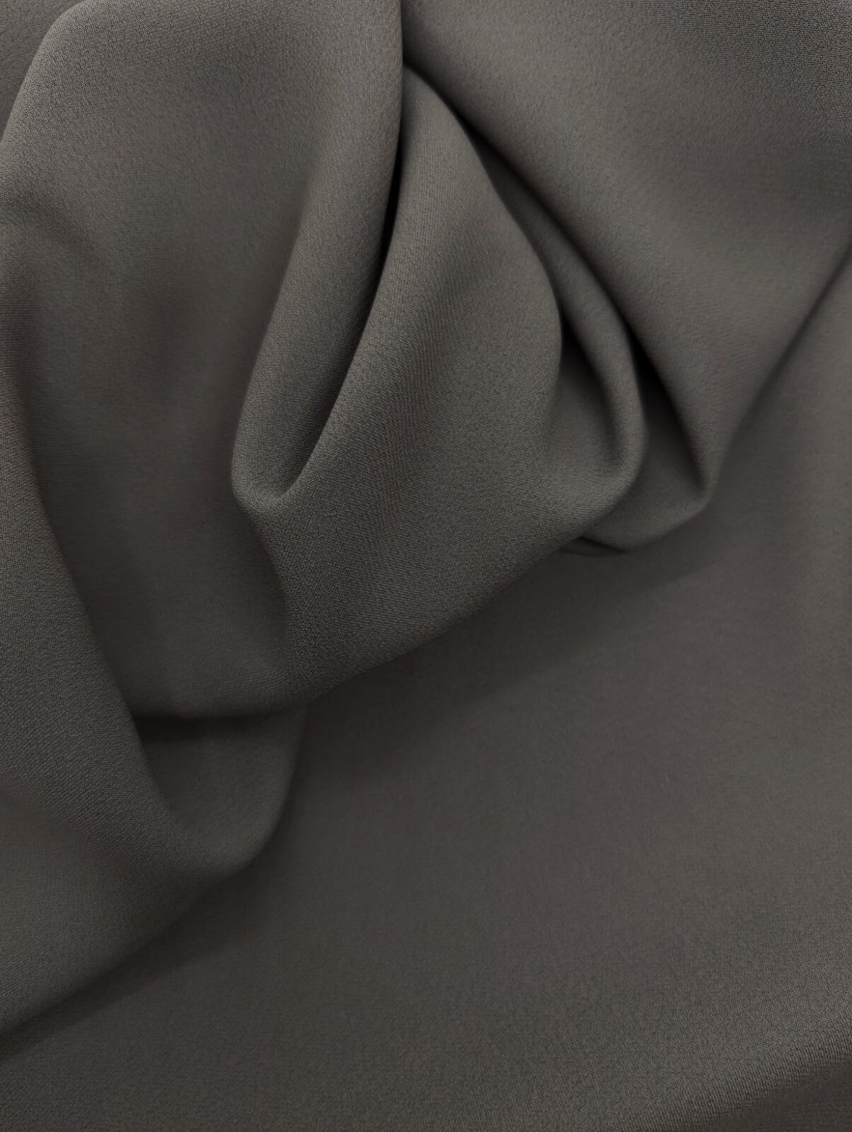 Luxurious blend of viscose and acetate with a double crepe weave and a soft satin sheen. The refined grey color makes it ideal for statement dresses, tailored suits, and special occasion garments.