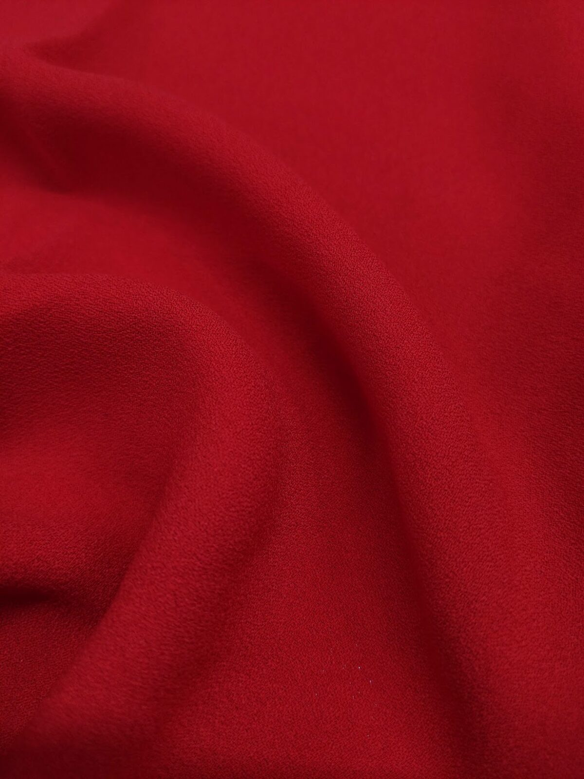 Vibrant viscose fabric with a double crepe weave and a refined satin luster. The rich red color makes it an excellent choice for statement evening gowns, festive ensembles, and stylish accessories.