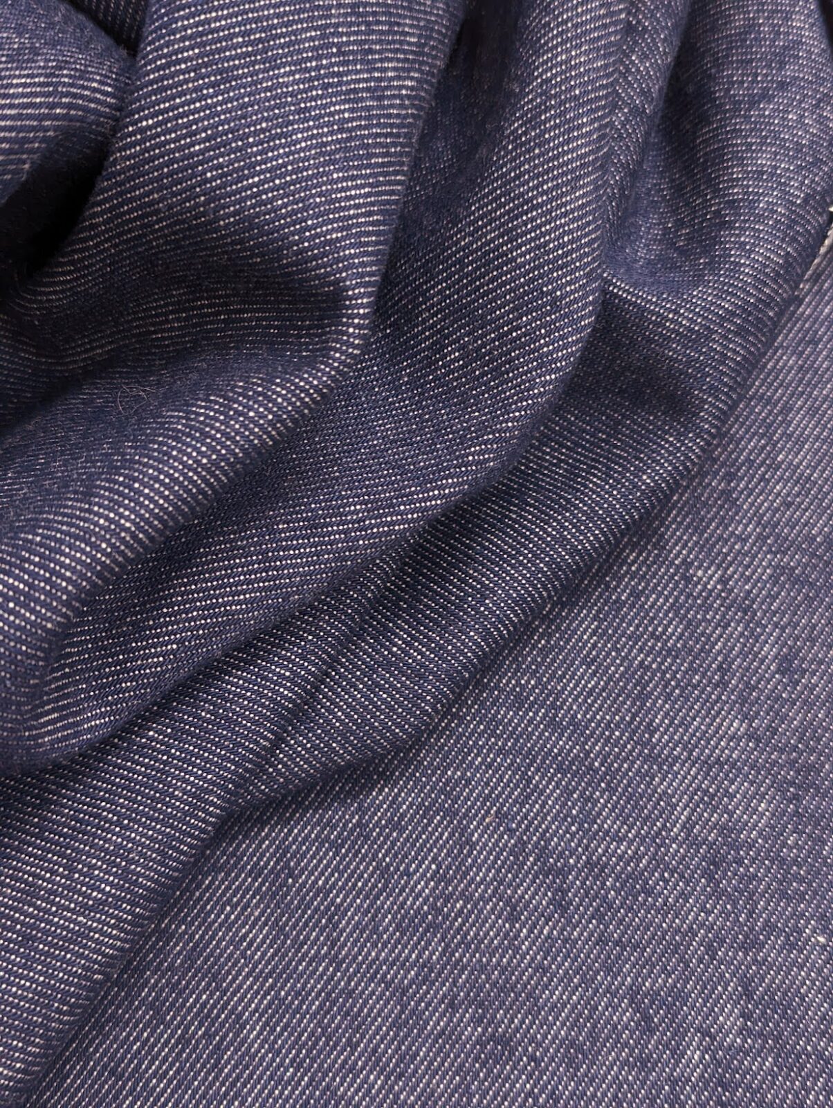 11oz Japanese denim with a gentle washed finish and even blue color.