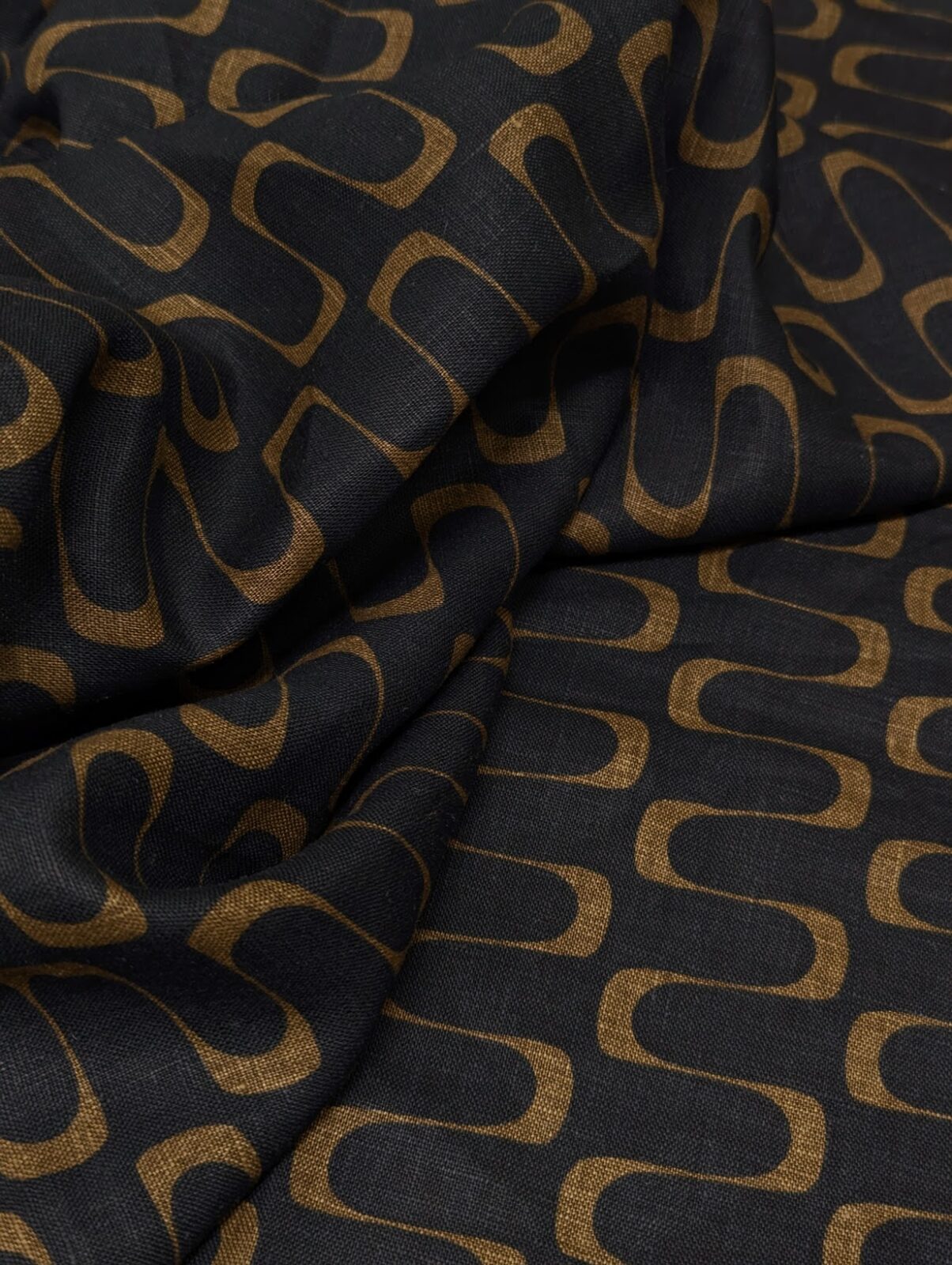 Linen Print Geometric Black Brown