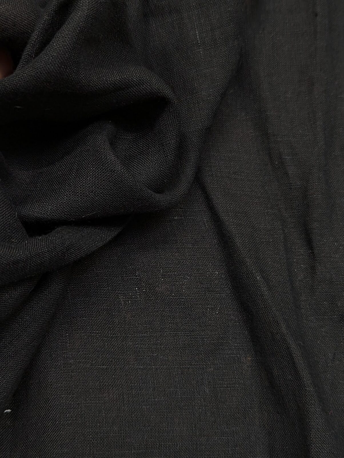 Classic plain-weave linen in deep black. Elegant and versatile, perfect for summer suits, dresses, and skirts.