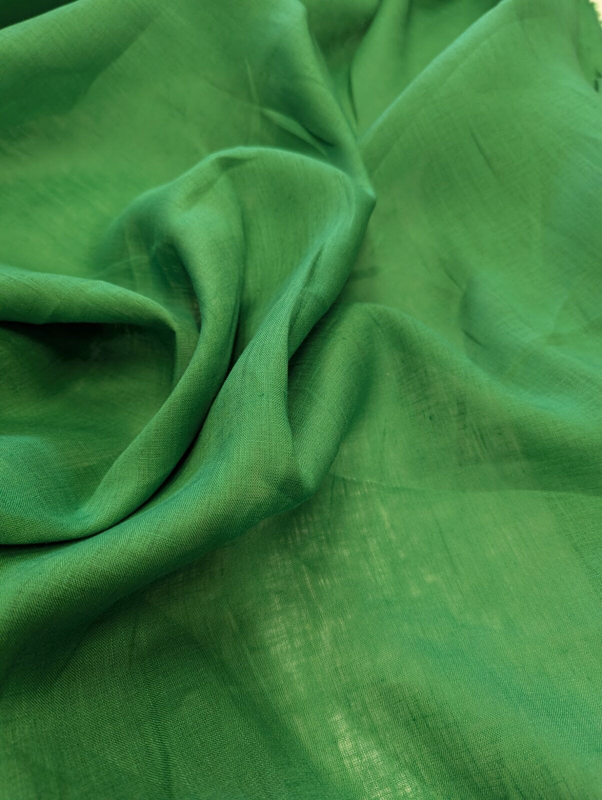 Airy plain-weave linen gauze in green. Light, breathable, and perfect for layered summer clothing.