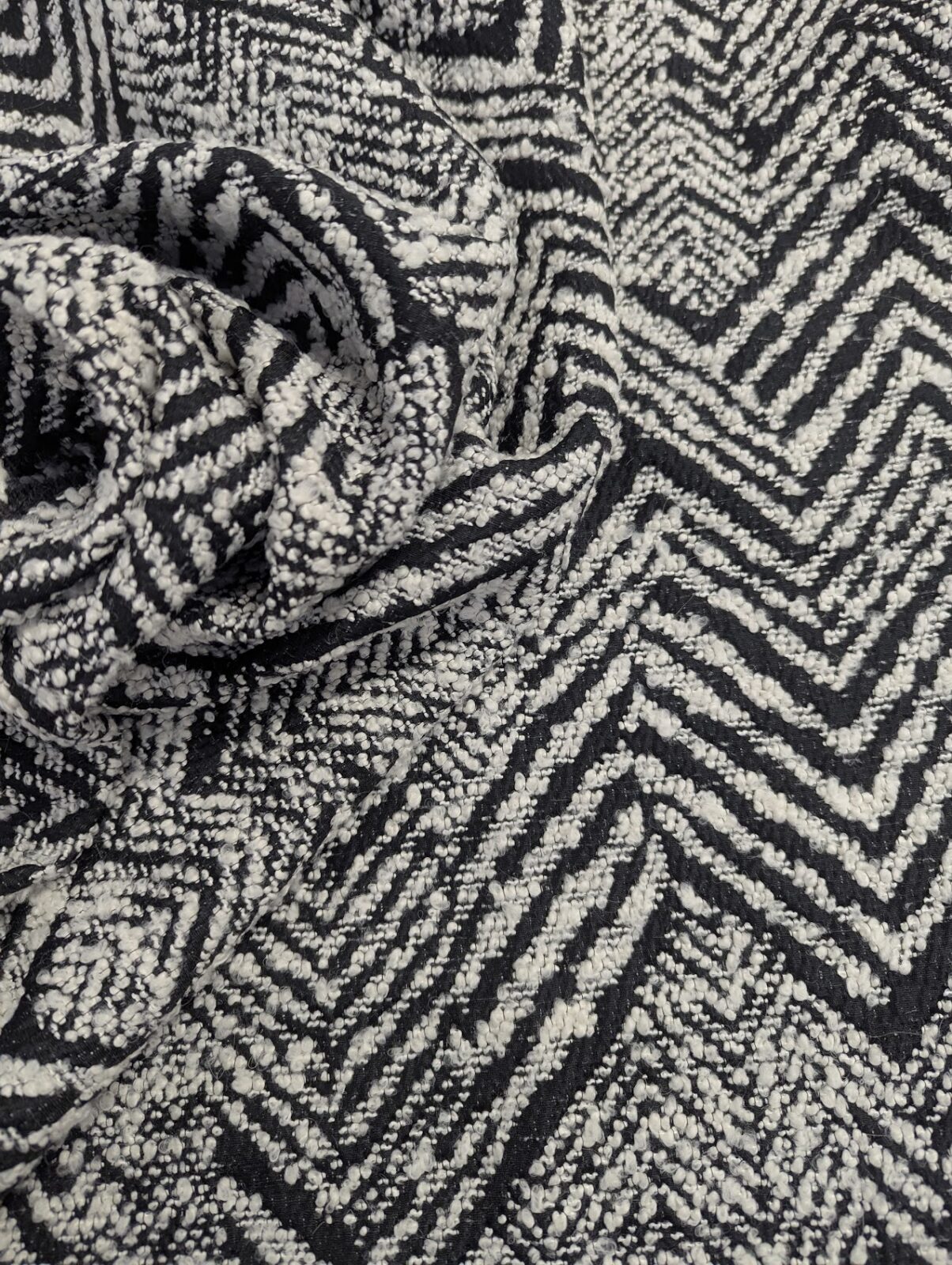Polyacrylic Wool Blend Herringbone Black White