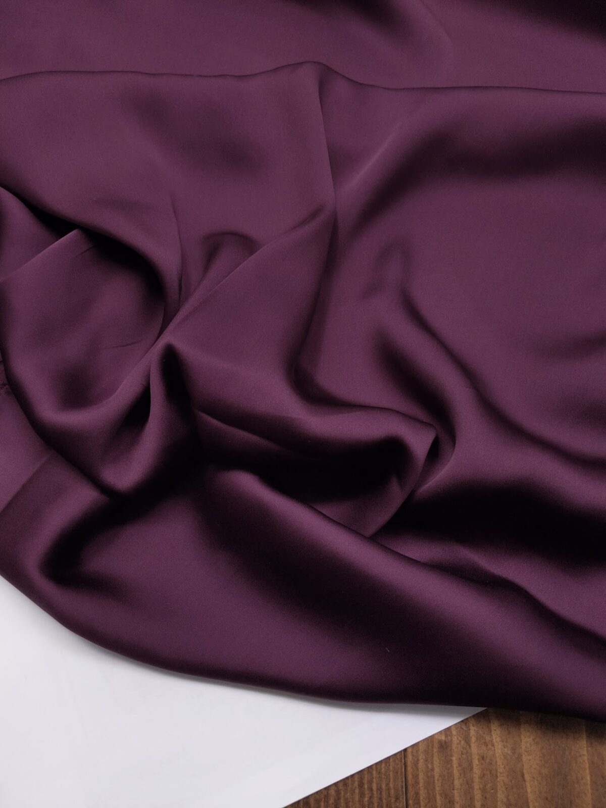 Deep aubergine satin silk with a rich sheen and fluid movement. Perfect for statement gowns, chic blouses, and elegant eveningwear. A fabric that combines sophistication with drama.