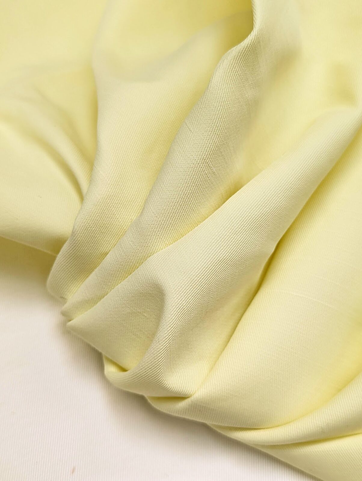 Bright and cheerful viscose-linen blend with a satin finish in a warm yellow shade. Combining a natural feel with a soft sheen, it is ideal for dresses, blouses, and resort wear.