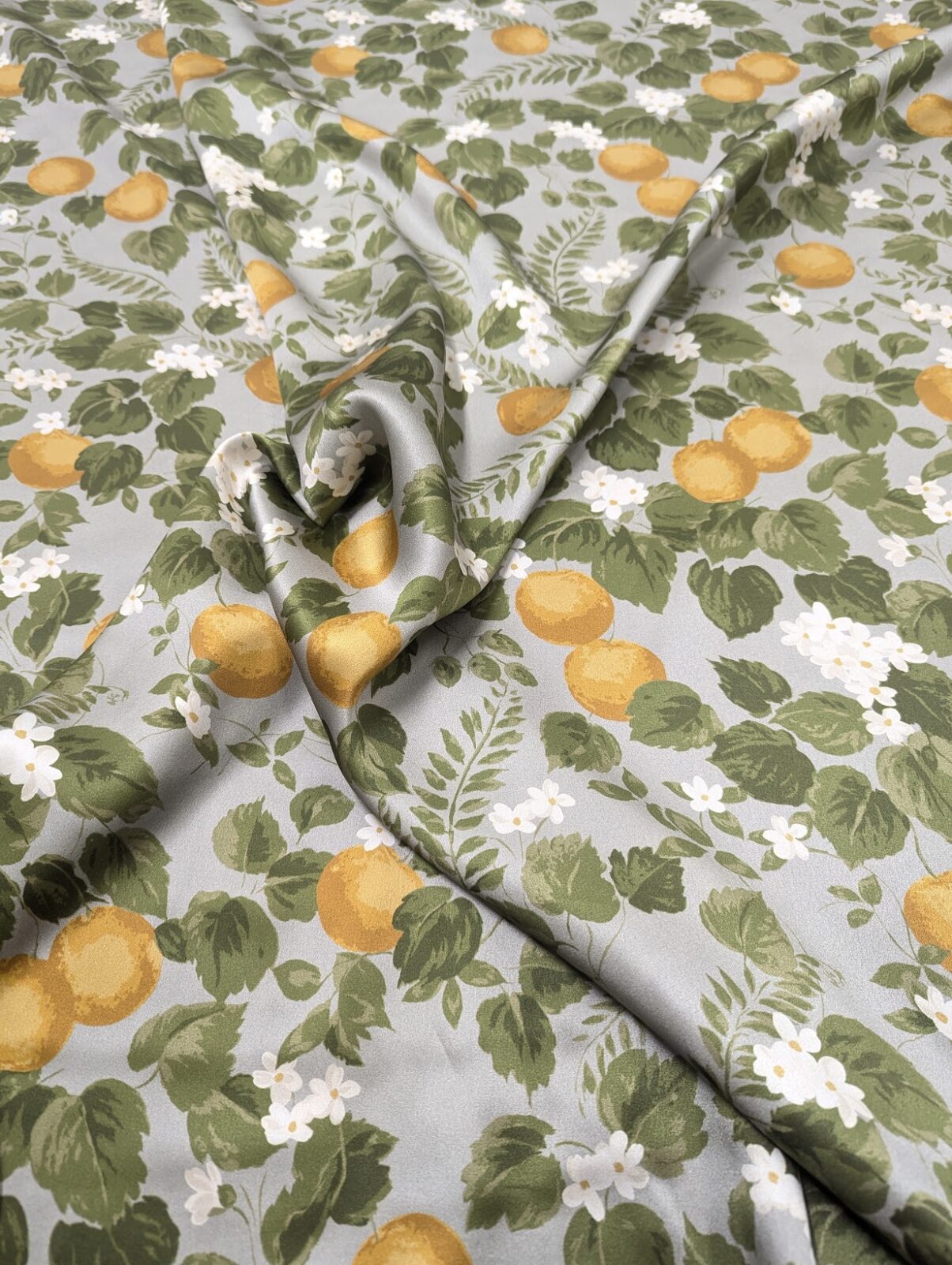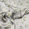 Silk fabric with a floral motif in green and yellow. Fine weave, natural sheen, and gentle drape for refined garments.