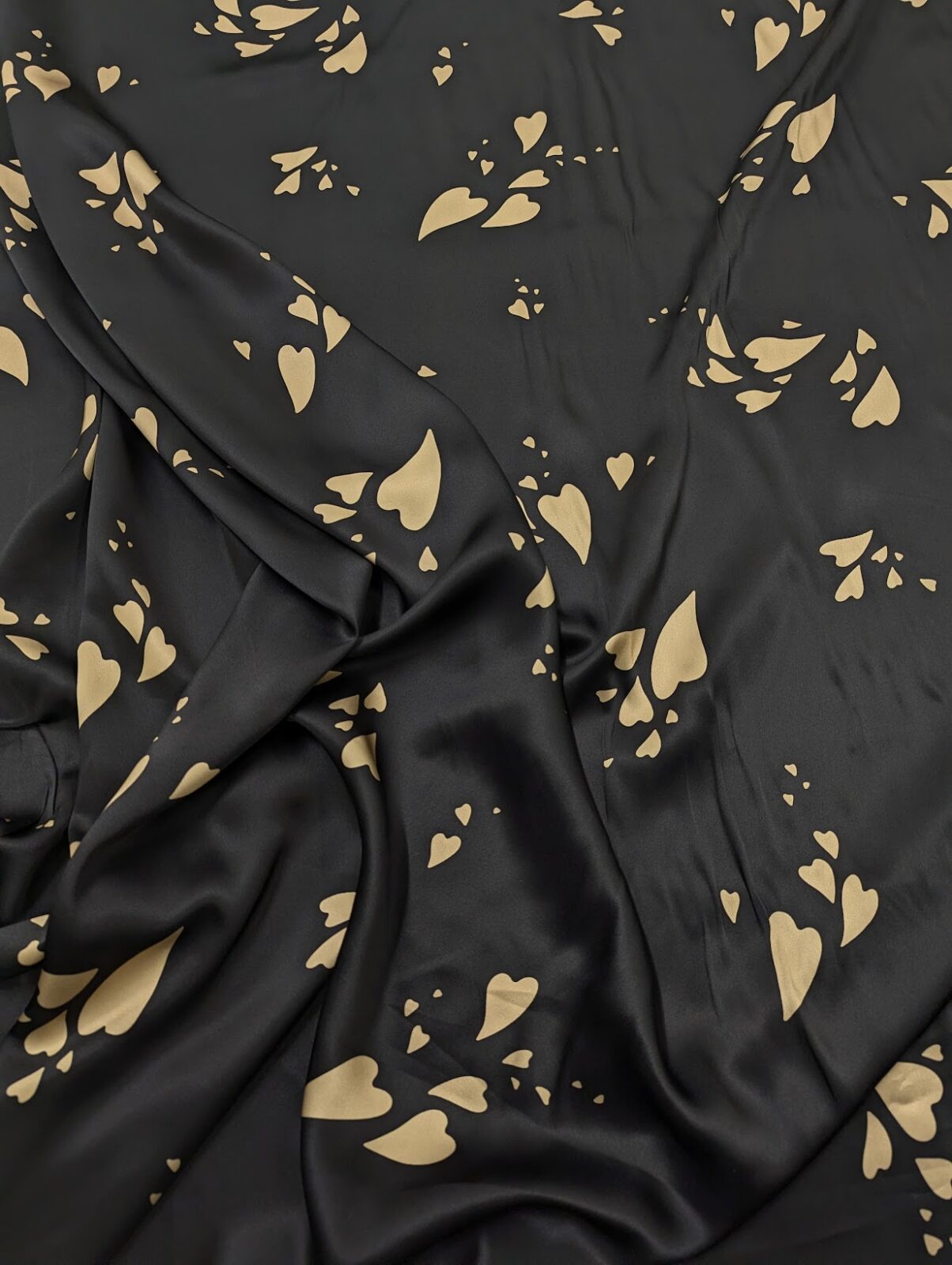 Silk Satin Print Hearts Black Gold