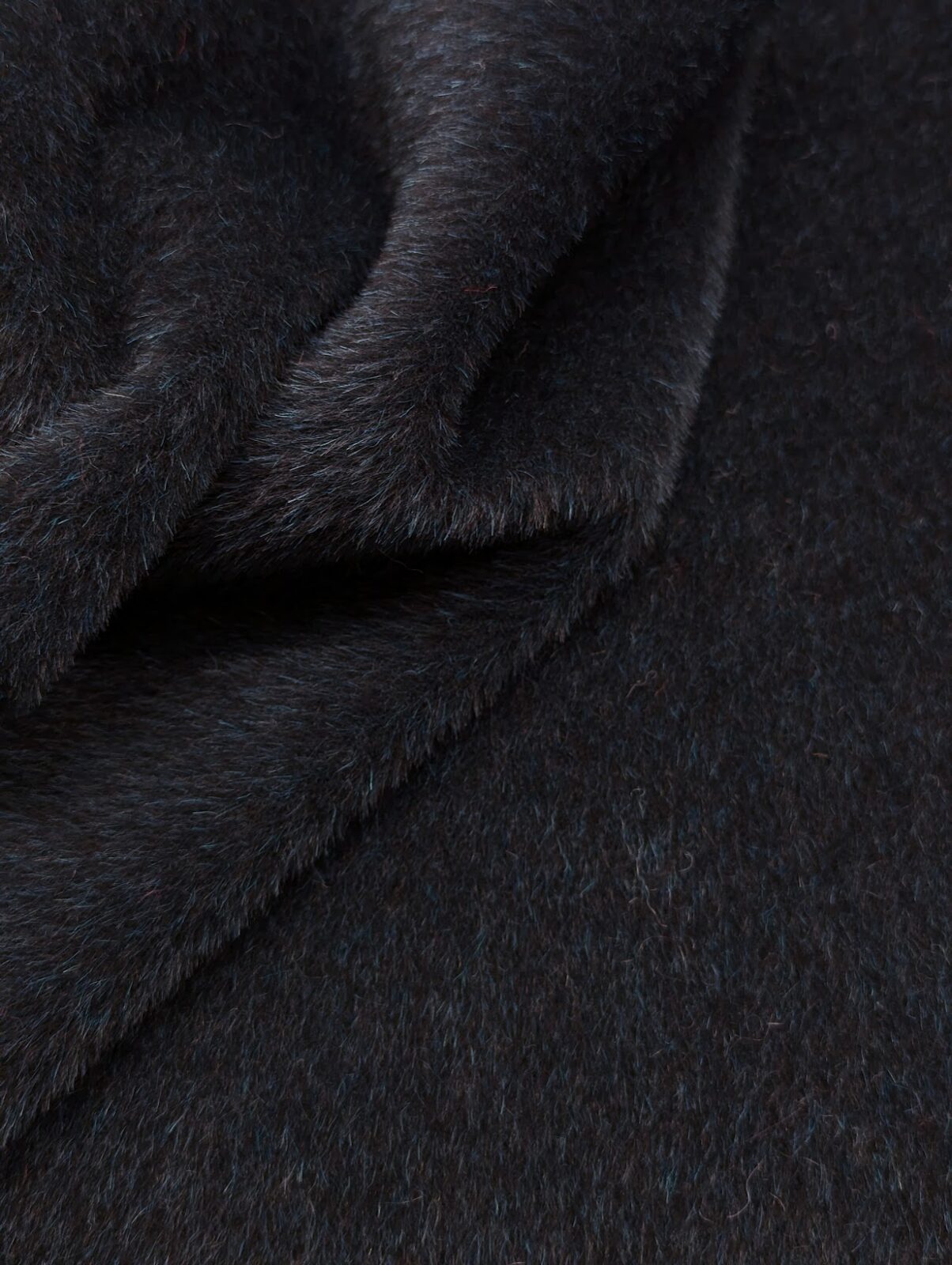 Suri alpaca blend featuring dark teal and black melange tones. Slightly lustrous surface with refined movement and resilience.