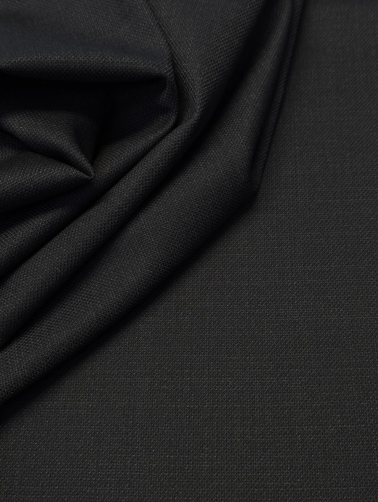 Light wool with elastane for comfort and shape recovery. Deep anthracite tone, ideal for structured yet flexible garments.