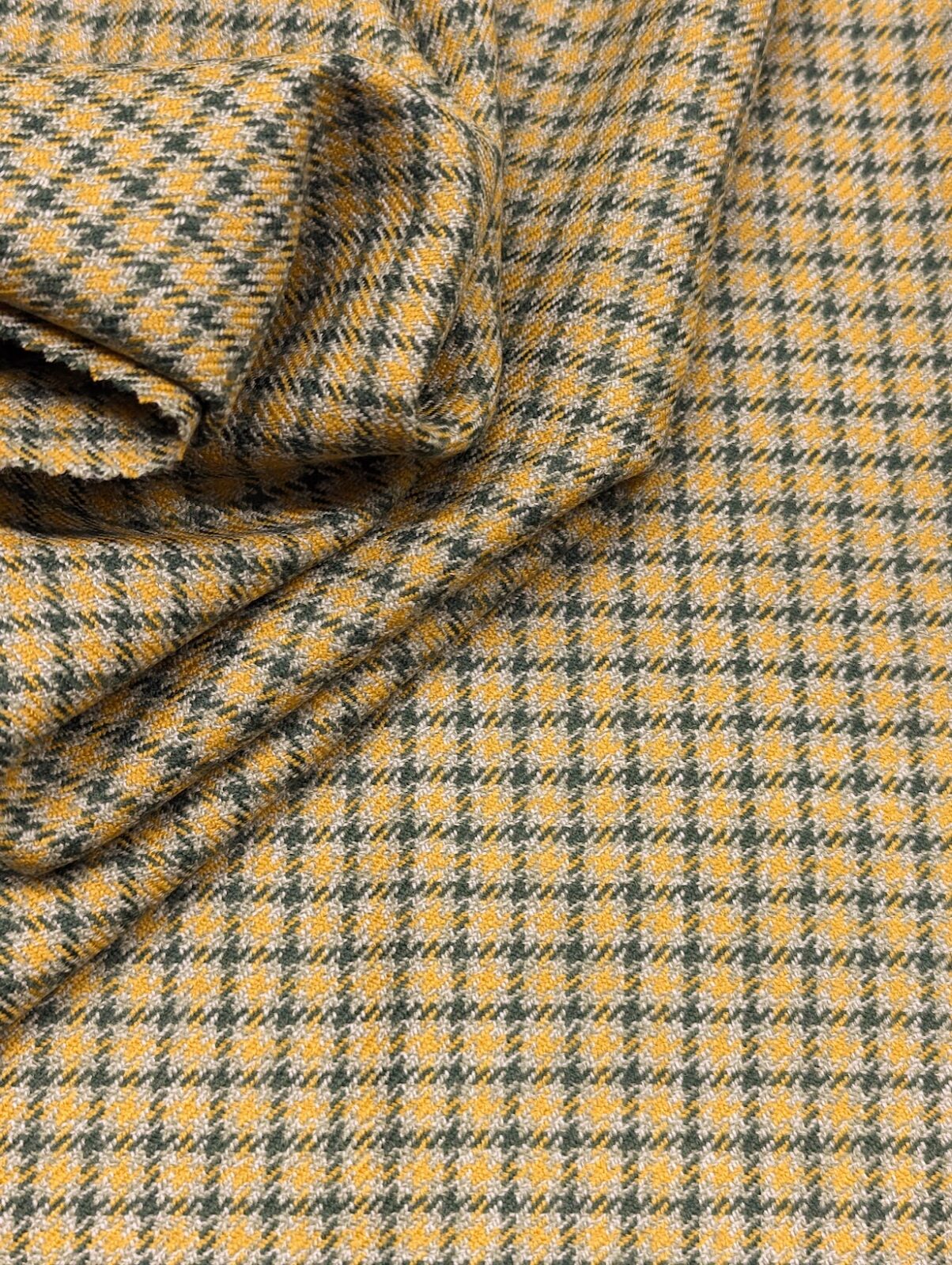 Wool tweed with a checked pattern in yellow. Textured weave with natural resilience and clear pattern definition.