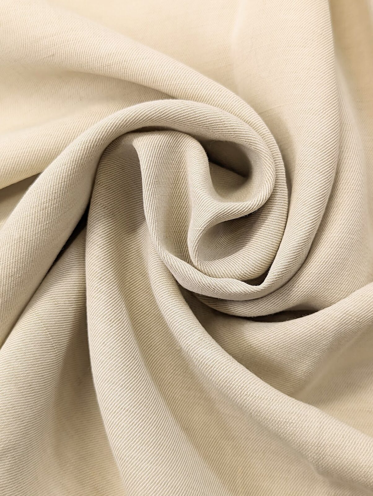 Elegant twill linen-viscose blend in ivory. Smooth and breathable, ideal for refined summer wear.