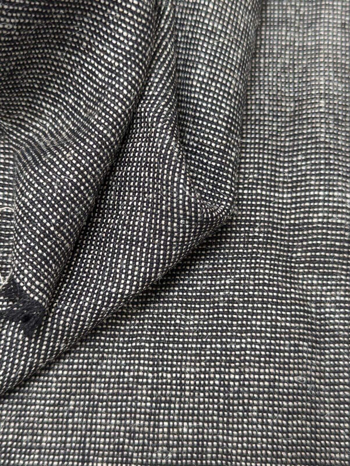 Black and white tweed with alpaca content. Soft touch and heritage-inspired character.