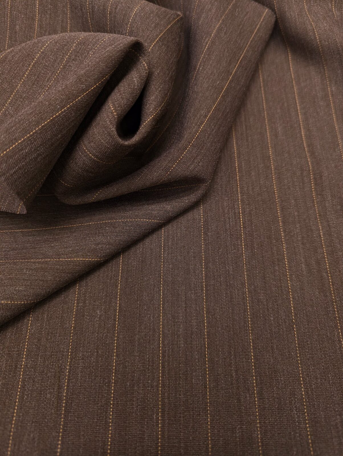 Classic brown suiting wool with woven stripes. Vintage stock from Solbiati, ideal for tailored jackets and trousers.