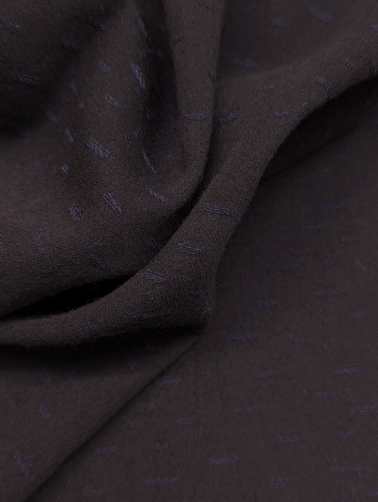 Jacquard wool suiting in deep blueberry shade. Subtle texture and elegant vintage finish.