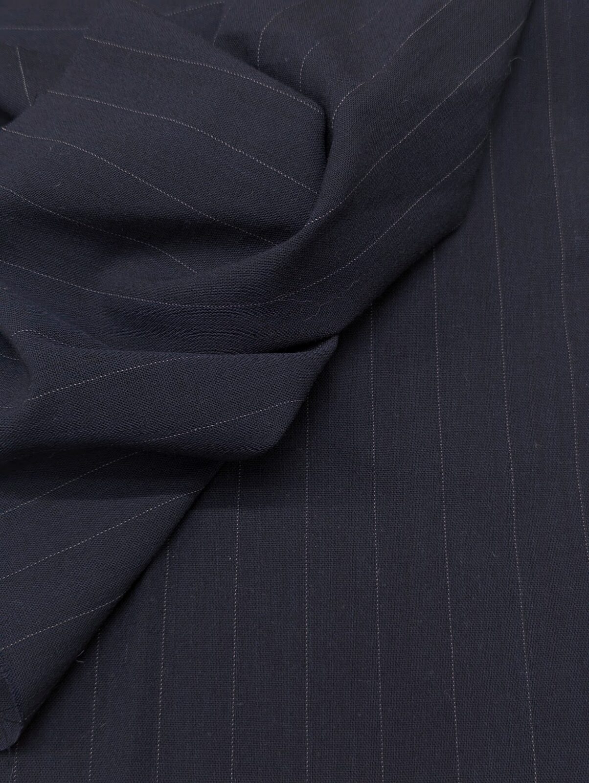 Dark blue wool fabric featuring discreet pinstripes. Vintage production, suitable for refined suiting.