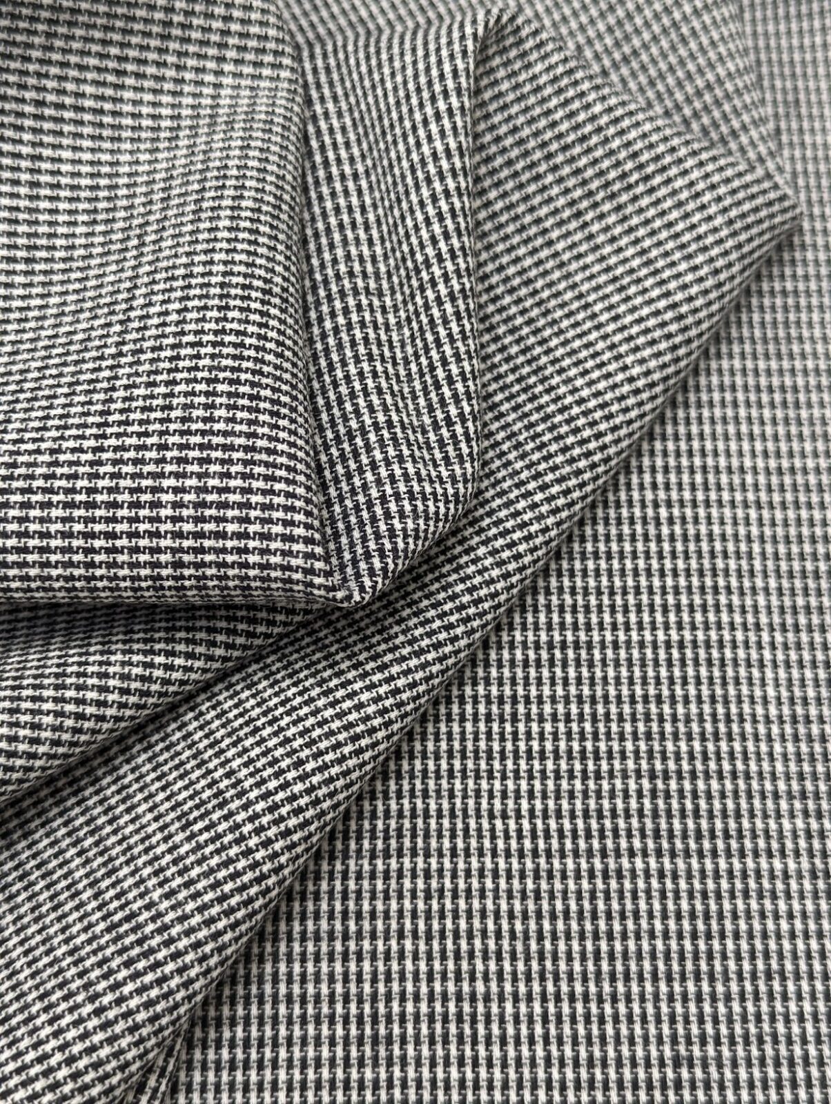Black and white patterned tweed wool. Distinct surface design with a vintage character.