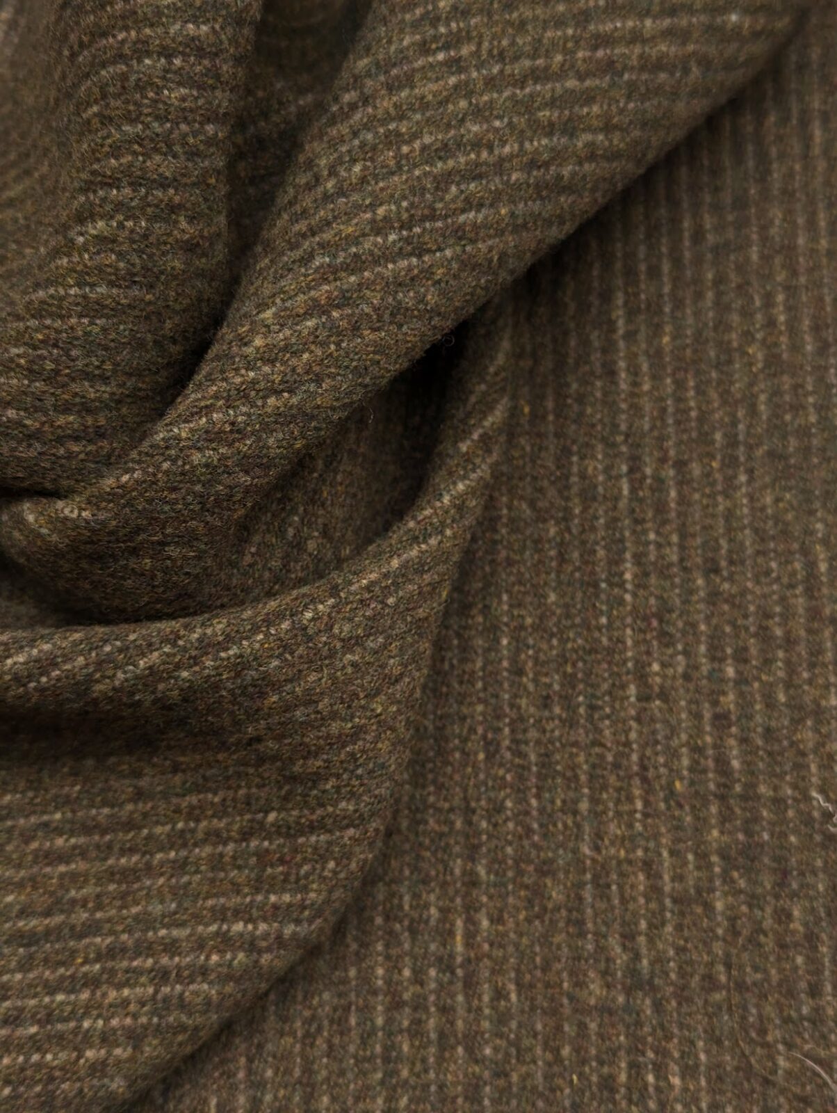 Greenish-grey tweed coating wool. Firm structure and coarse hand with a vintage appearance.