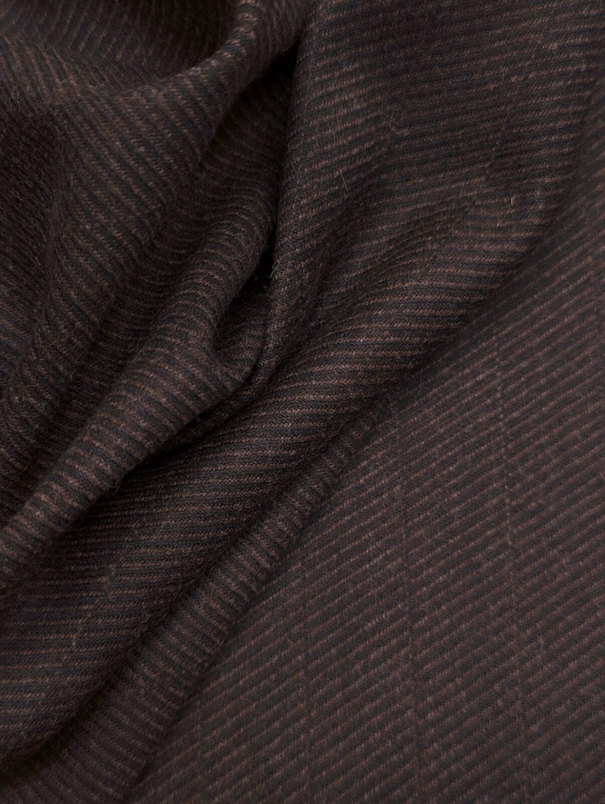 Dark chocolate tweed wool with compact construction and soft surface. Old-inspired suiting quality.