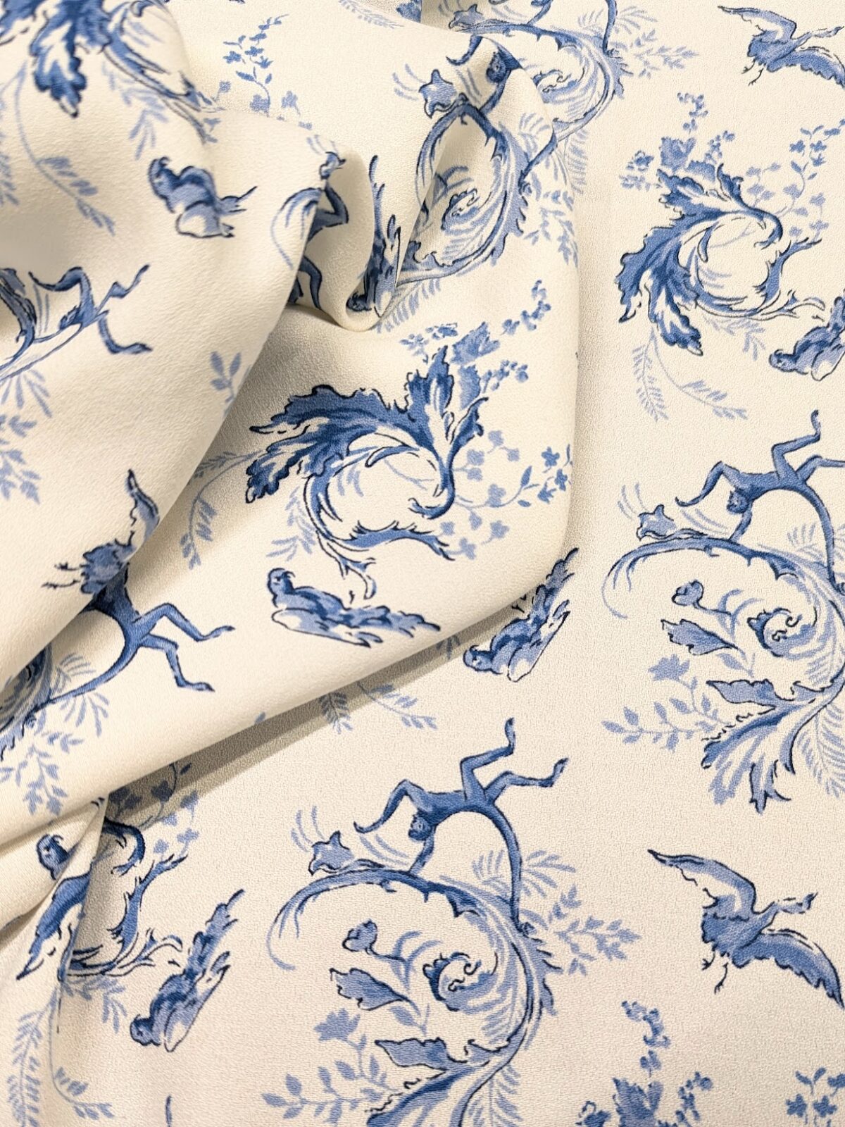 Viscose Crepe Print Monkeys Blue on White