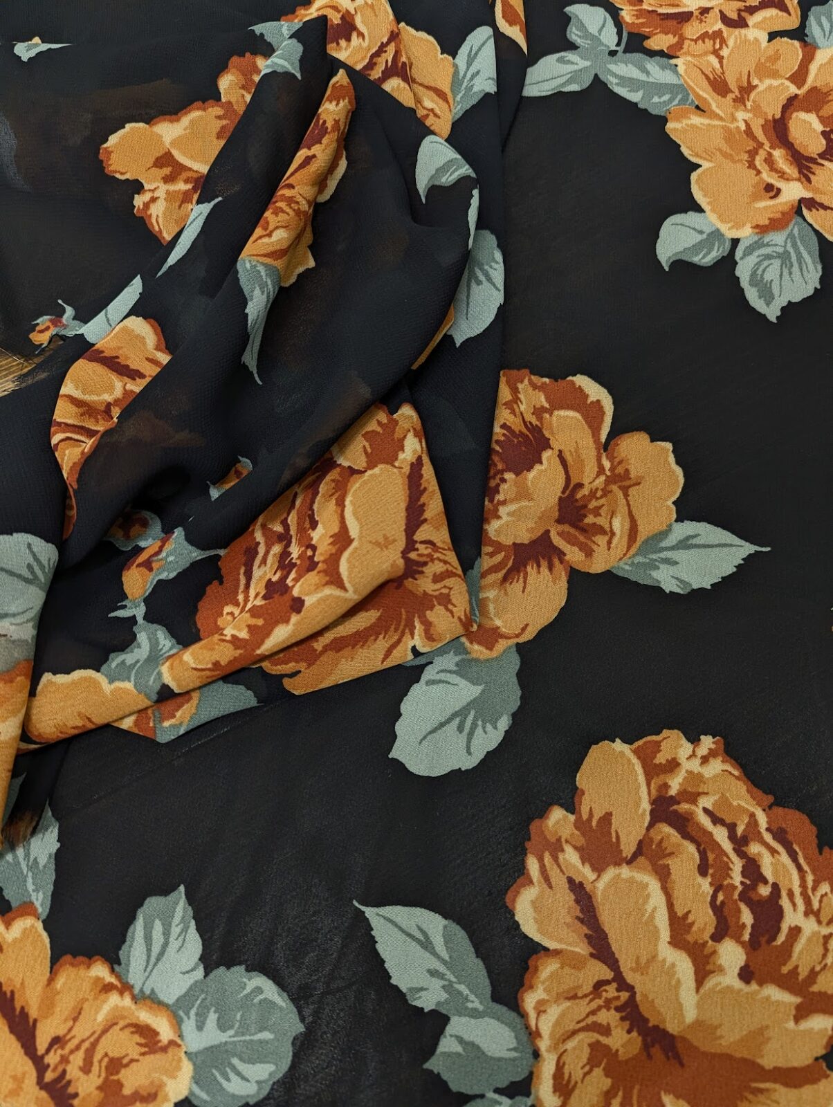 Viscose Goergette Black Red Roses