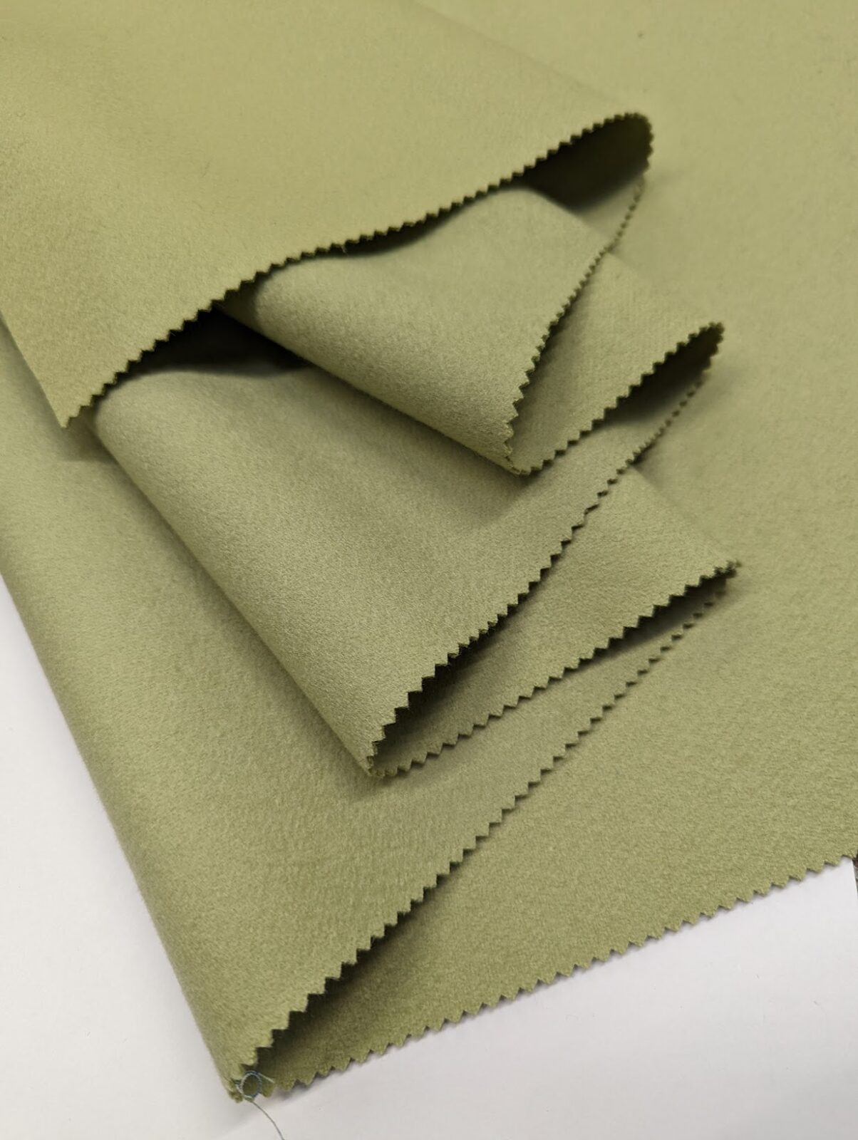 Fresh and warm, this soft avocado green wool-cashmere fabric brings a modern twist to outerwear. Slightly brushed with a gentle drape.