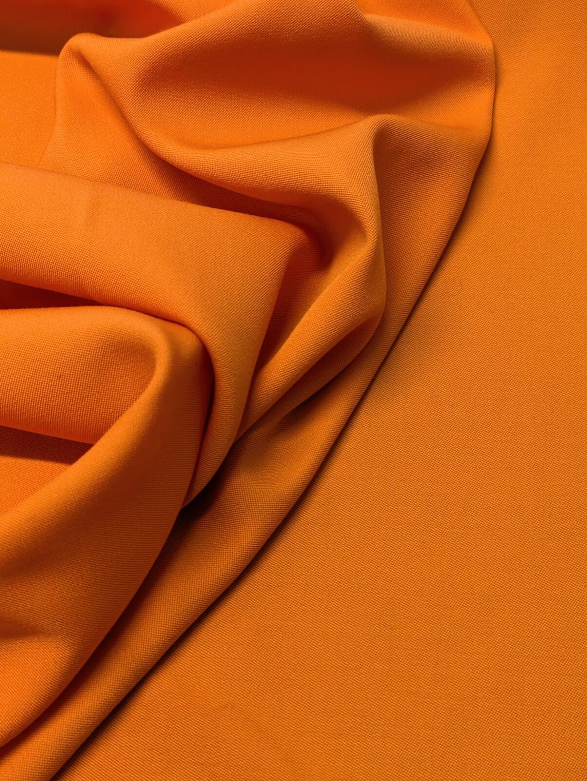 Midweight wool with a distinctive bright-orange tone. Smooth surface and firm structure.