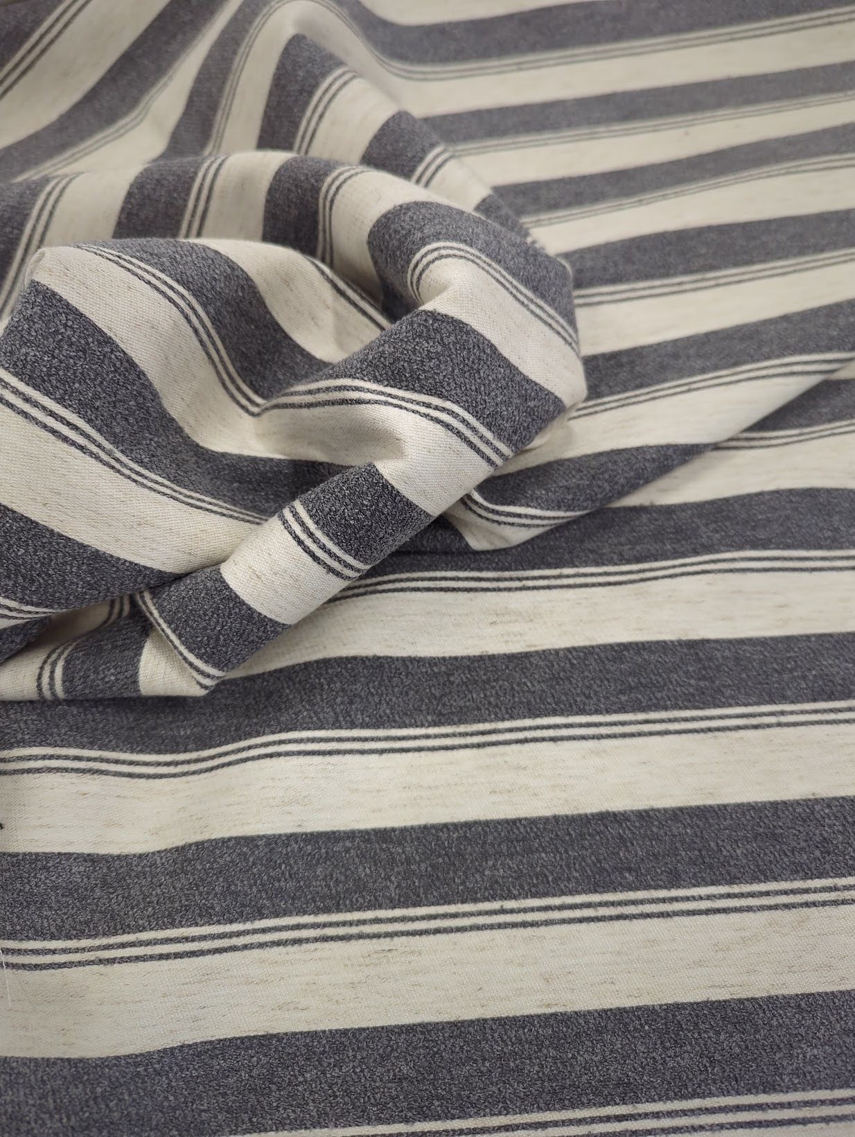 YSL Cotton Viscose Linen Stripes Grey Off-White